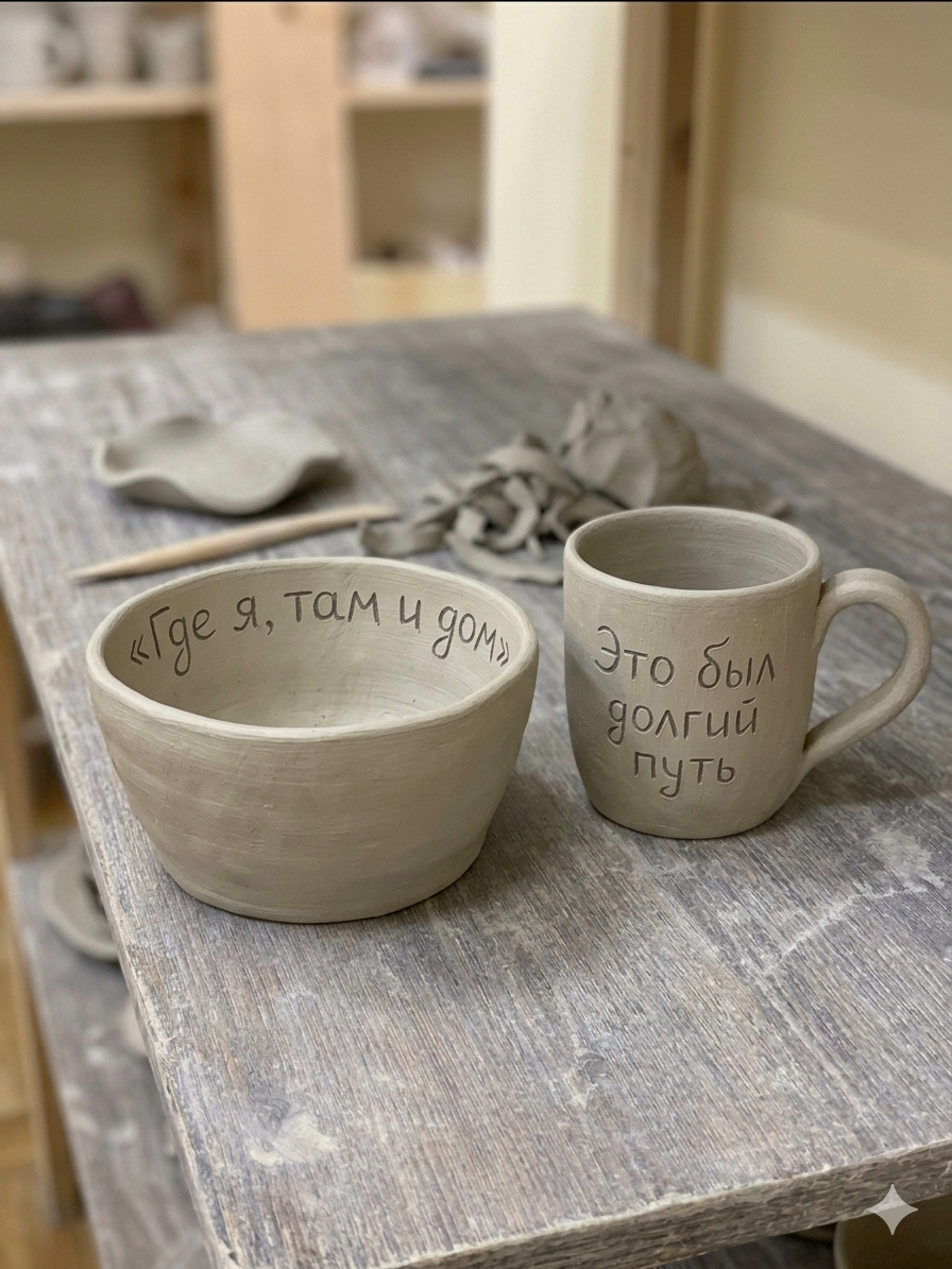 После занятия ваши работы отправятся на сушку, профессиональный обжиг и глазуровку. Через 3-4 недели вы заберёте домой полностью готовые функциональные керамические изделия - на память о вашем особенном дне.